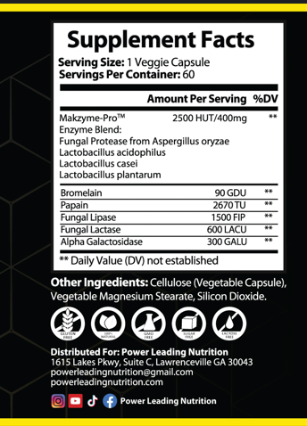 Optimize digestion, nutrient absorption, and overall gut health with Digestive Enzymes by Power Leading Nutrition — a comprehensive enzyme blend designed to help your body break down food efficiently, reduce bloating, and maximize nutrient utilization.